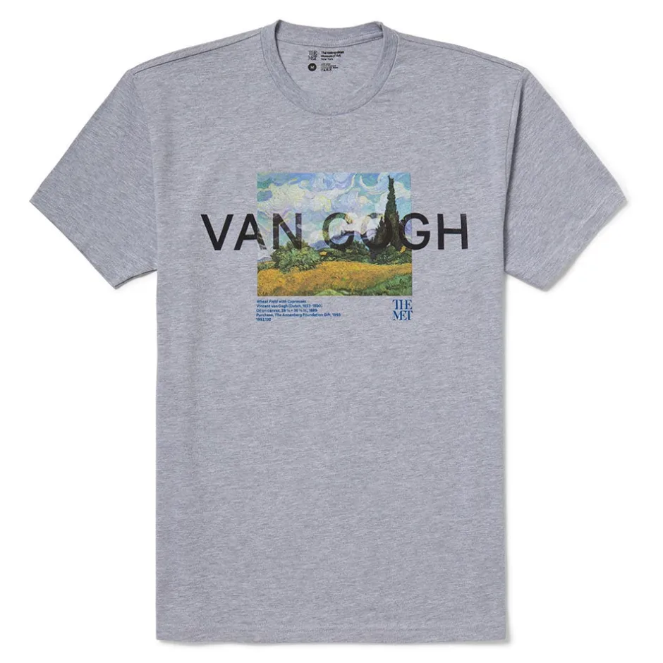 Vincent van Gogh (Dutch, 1853–1890) became particularly captivated by cypress trees during his convalescence at the asylum in Saint-Rémy. Wheat Field with Cypresses (1889), housed at The Met and reproduced on this comfy crew neck tee, is among his exuberant compositions featuring the towering evergreens. The ordinarily self-critical artist regarded this painting as one of his “best” summer landscapes.