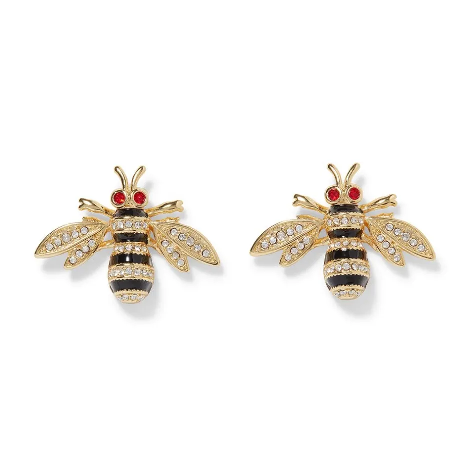 These charming stud earrings embellished with enamel and Swarovski® crystal celebrate Cornflowers and Buttercups (ca. 1900) by Peter Carl Fabergé (Russian, 1846–1920). Featuring a bee perched atop a golden buttercup, the exquisite confection is crafted in gold, enamel, rose-cut diamonds, and rubies; its vase and “water” are carved from rock crystal. A visionary artisan and jeweler, Fabergé counted the Russian imperial family among his firm’s elite clientele. Both Empress Alexandra Feodorovna and her sister, Queen Alexandra of Great Britain, were charmed by Fabergé’s flower creations.
