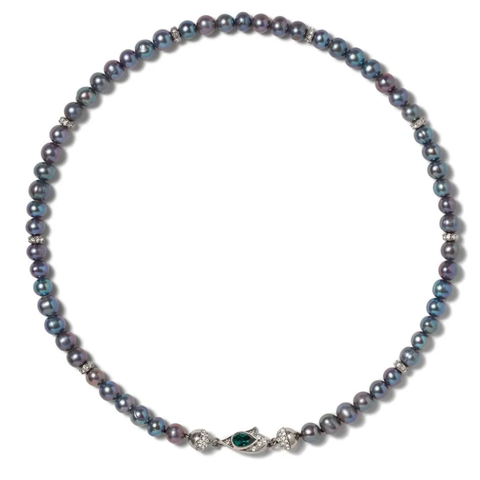 Bearing the lush blues, greens, and purples of a peacock feather, the iridescent pearls defining this jewelry nod to a pair of porcelain peacocks (ca. 1755–58) produced at the Chelsea Porcelain Manufactory(British, 1745–1784). Avian figurines were made at the factory since its inception, and they accounted for an important category of its early sculptural output. These particular peacocks were made during the factory’s so-called Red Anchor period (ca. 1753–58) when the popularity of their birds declined and few new models appeared. In addition to their relative rarity, these peacocks are considerably larger and more technically ambitious than their predecessors. Our luminous designs pay tribute to these whimsical…See More