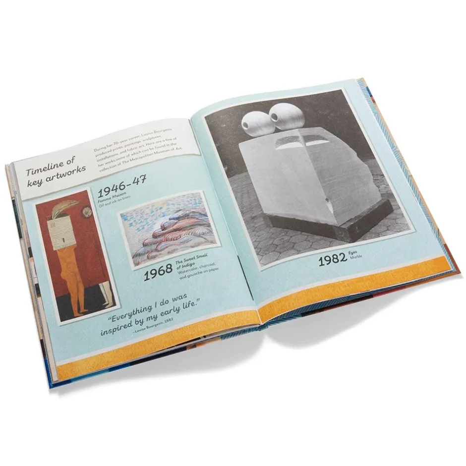 Meet Louise Bourgeois (American, b. France, 1911–2010), the celebrated multimedia artist best known for her large sculptures of spiders. Learn all about her life and what led her to explore her fears and emotions, and have a go at making your own art inspired by your dreams! This charming illustrated series considers what inspired beloved artists, and encourages the creation of new works.