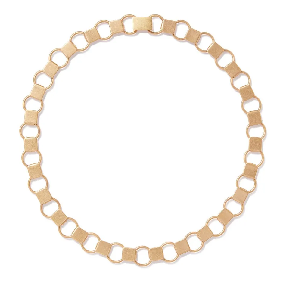 Our timeless necklace is modeled after two gold belt attachments from The Met’s Greek and Roman Study Collection. Roman Republic laws limited the display of personal wealth, but jewelry made a comeback in the imperial period after 27 B.C. Many goldsmiths migrated to Rome to satisfy this new market, and their styles were copied throughout the Roman empire as well-to-do provincials sought to follow imperial fashions.