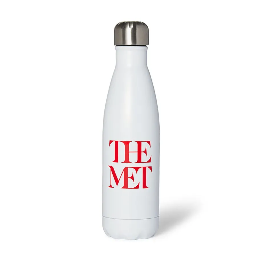 The Met’s sturdy logo water bottle makes a graphic statement in bold red typeface.