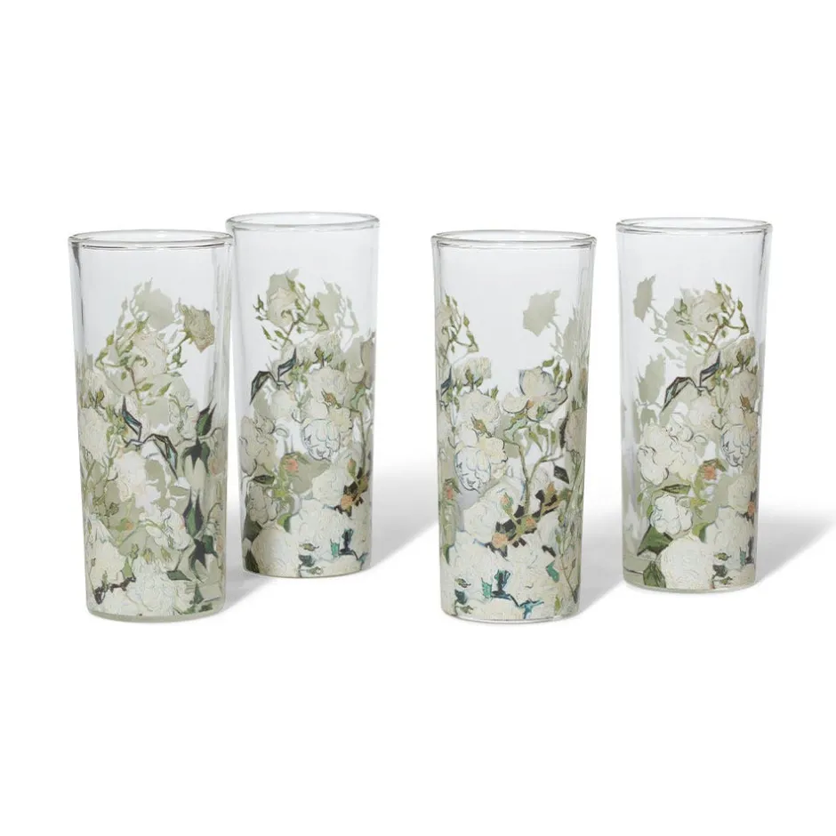 This artful set of glass tumblers evokes Vincent van Gogh’s (Dutch, 1853–1890) Roses (1890) in the Museum’s holdings, one of four exceptional still lifes completed just before his departure from the asylum in Saint-Rémy. The artist conceived of this quartet of radiant spring bouquets, which also includes The Met’s Irises (1890), as an ensemble. Though the color has since faded, traces of pink nestled in the pillowy petals and along the tabletop hint at the vividness of the artist’s “canvas of pink roses against a yellow-green background in a green vase” in its original state.