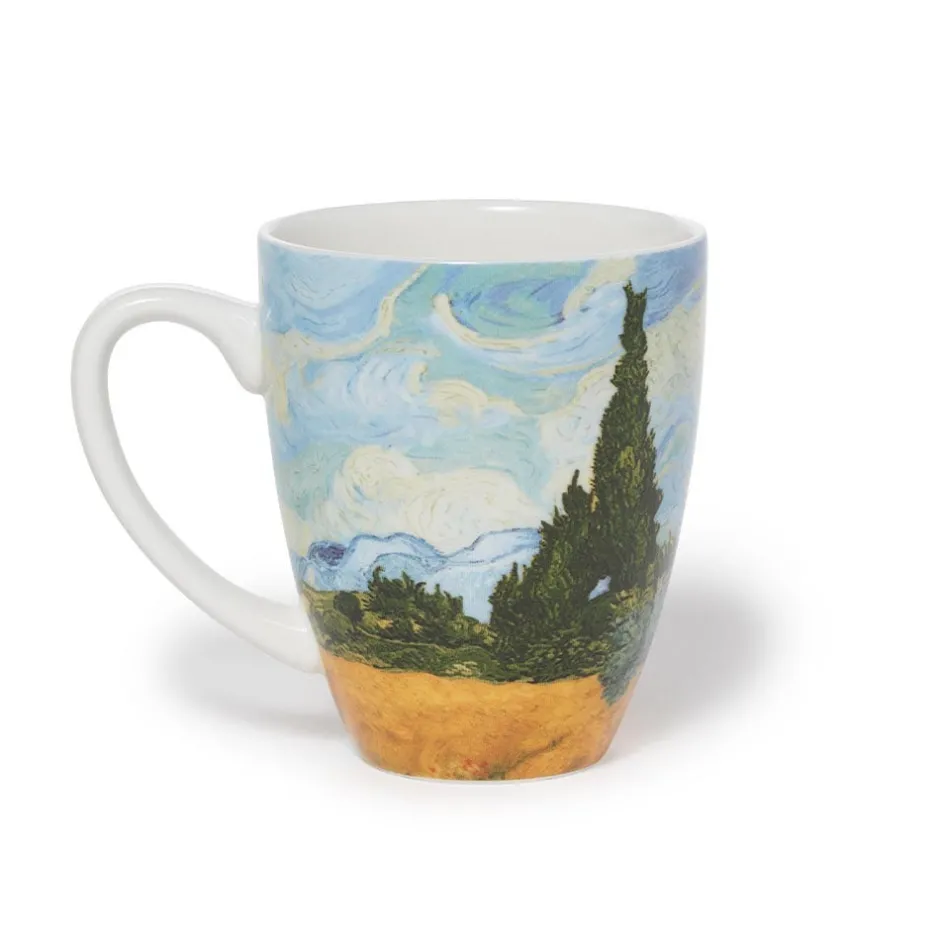 This tea-infusing covered mug featuring a detail from Vincent van Gogh’s (Dutch, 1853–1890) iconic Wheat Field with Cypresses (1889) makes tea time a splash. Van Gogh became captivated by cypresses during his convalescence at the asylum in Saint-Rémy, and this beloved painting—which the artist considered one of his “best” summer landscapes and a highlight of The Met collection—is among his liveliest compositions featuring the towering trees.