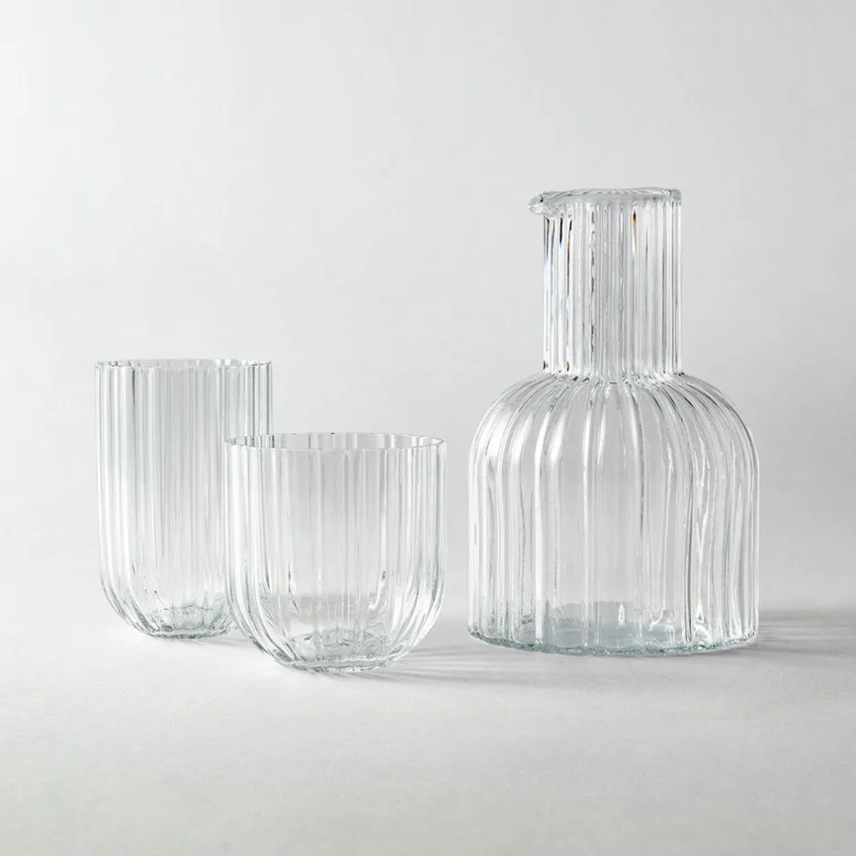 The couple first conceived this glassware in 1979 as part of a larger design commission for an Italian hotel chain. The Vignellis’s graceful, lightweight design is masterful in its geometric simplicity; rounded ribs catch and reflect light, bringing an inviting and celebratory sparkle to the glass.